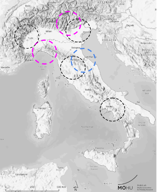 While previous studies have focused mainly on urban areas, this project will also examine the rural context, which it will attempt to quantify through a geo-referenced analysis, owing to the wealth of information available for Italy. Attention will also be paid to short and long-distant mobility.